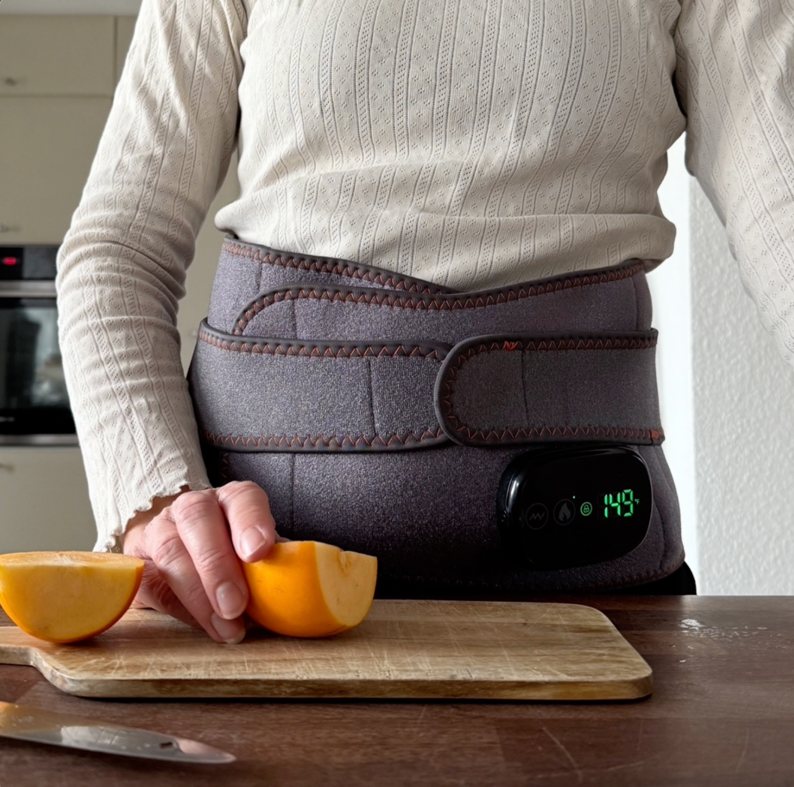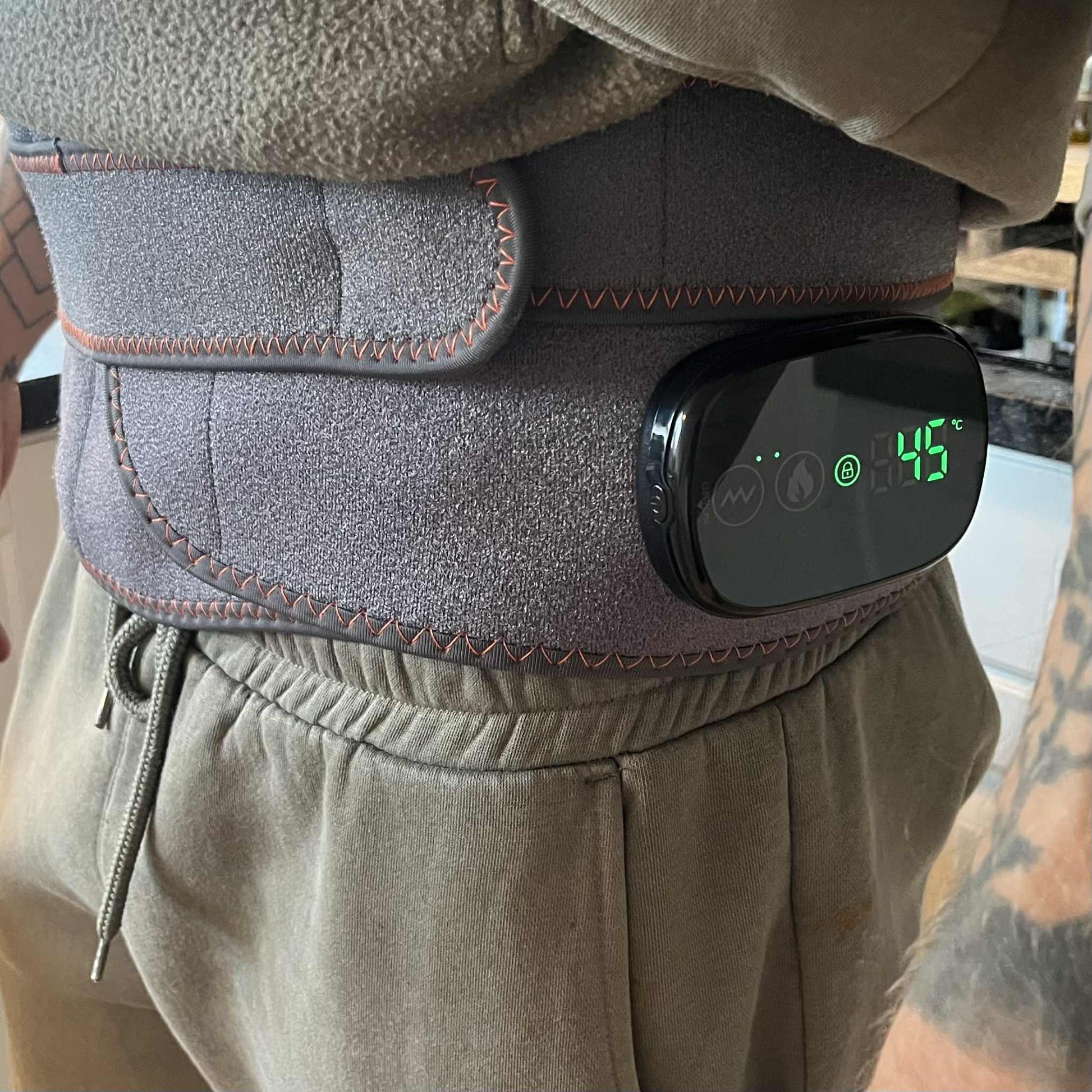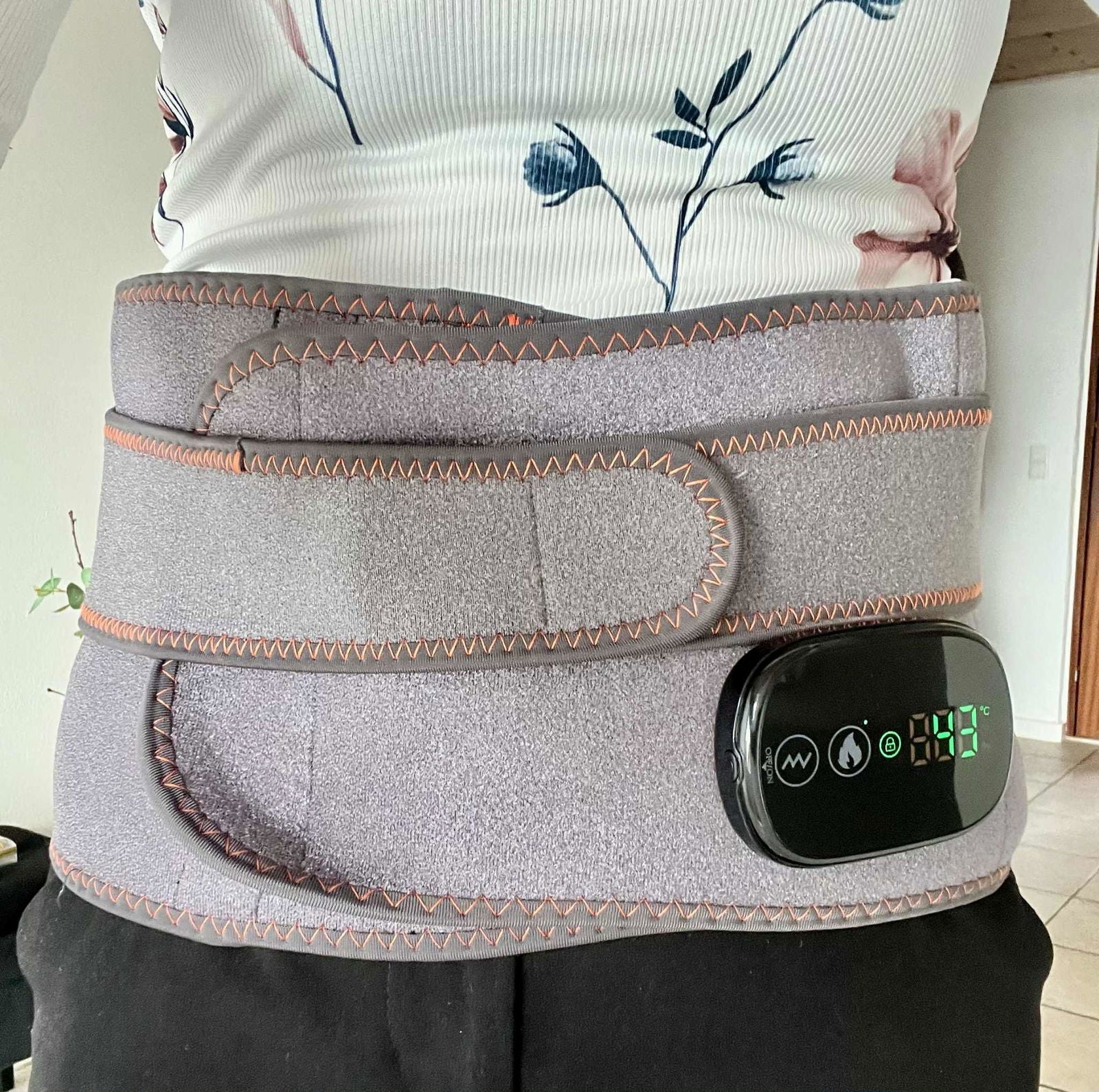 Bæltet har tre varmeniveauer (40–65 °C), som du selv kan justere efter dit behov.