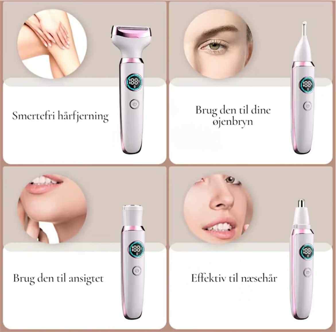 4-i-1 funktion – ét værktøj til ben, ansigt, bikinilinje og næsehår