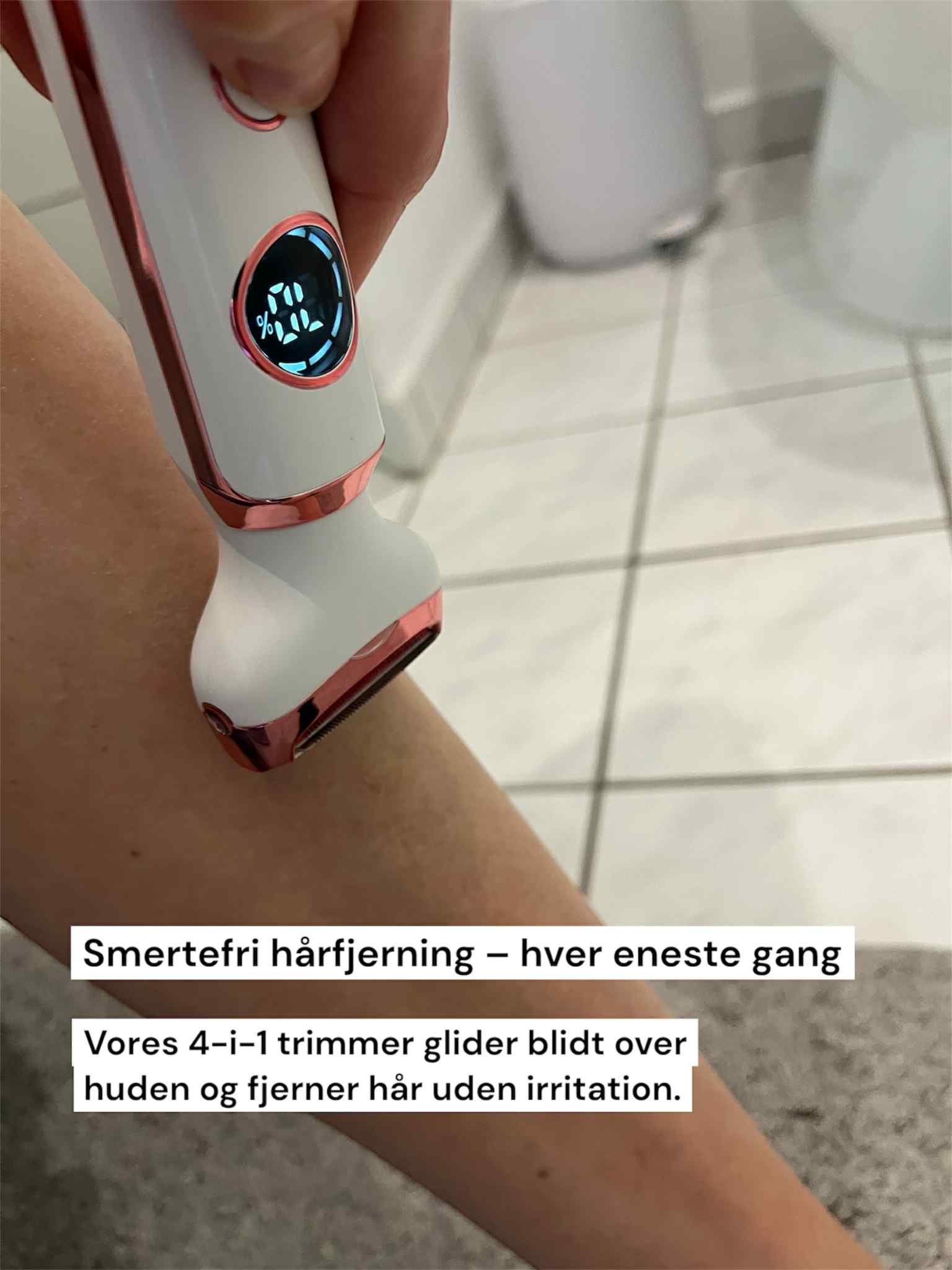 Én enhed til ben, armhuler, bikinilinje og ansigt – præcis og blid, også på de følsomme områder.